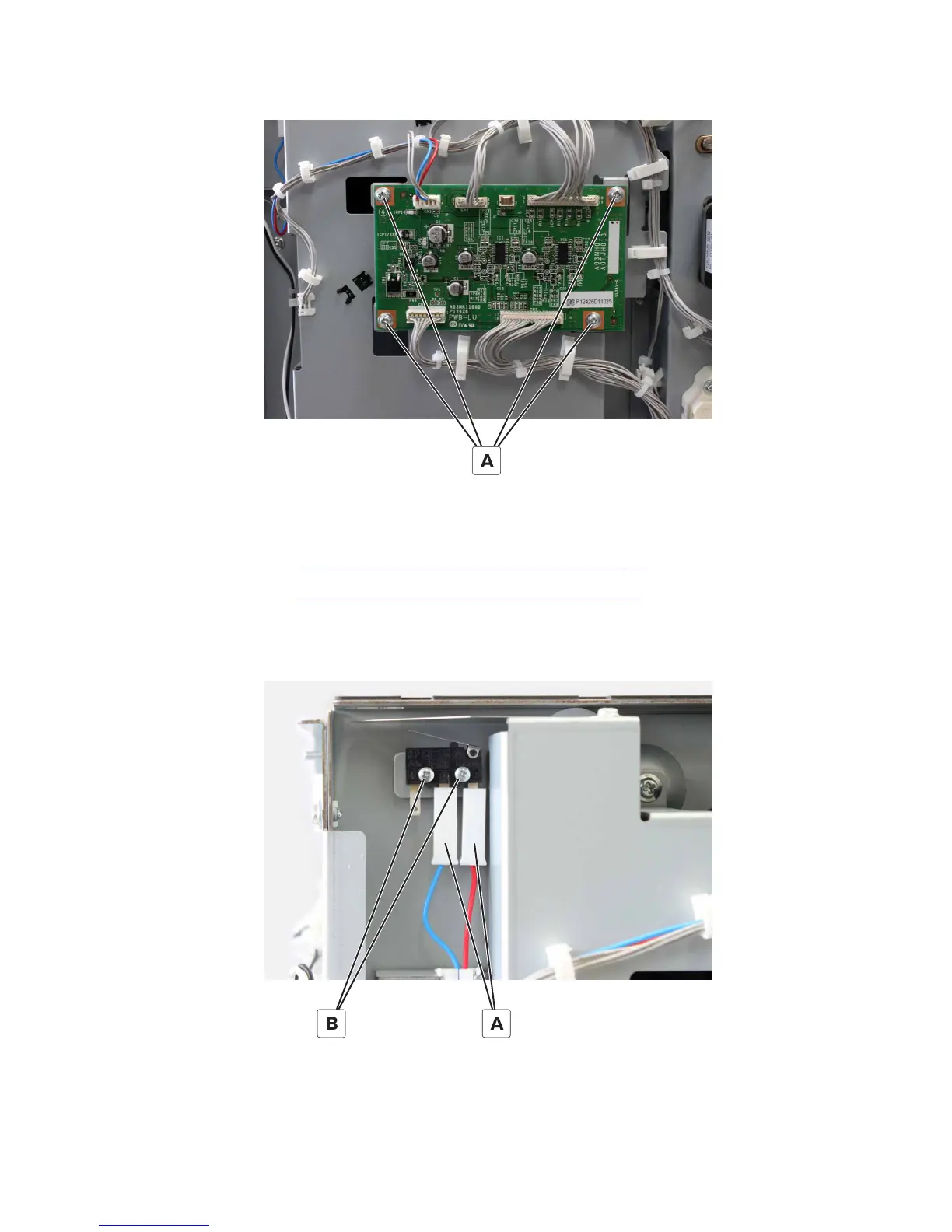 4 Remove the two screws (B), and then remove the switch.