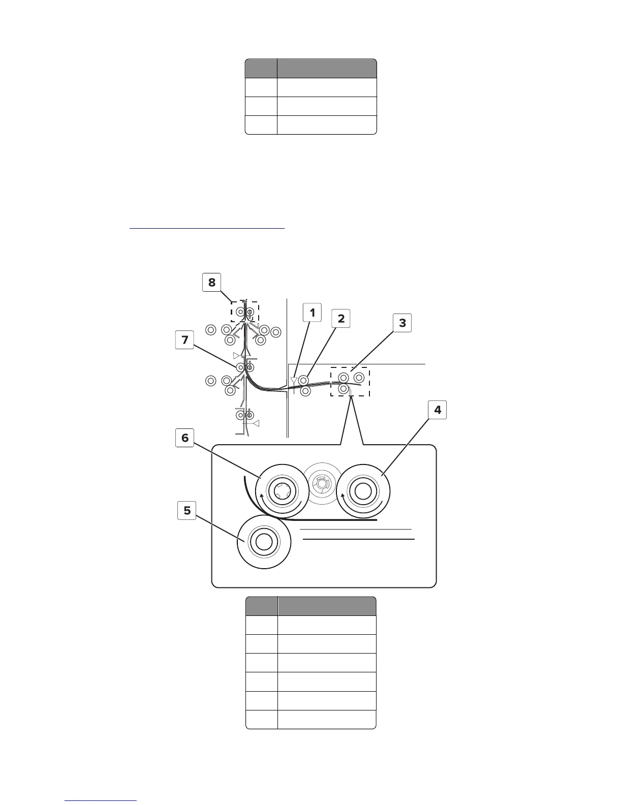 the paper to the tray 2 transport roller. The sensor (feed) detects when paper passes through the transport roller.