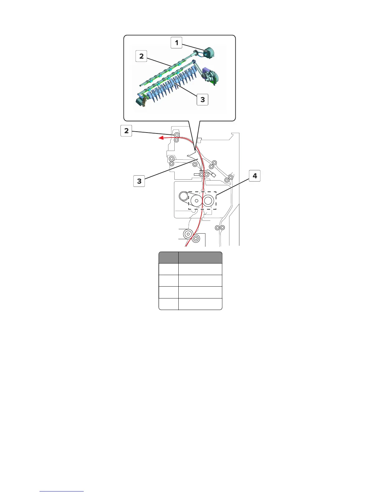 The redrive roller, which is driven by the motor (redrive), reverses rotation to feed the paper back to the printer. The