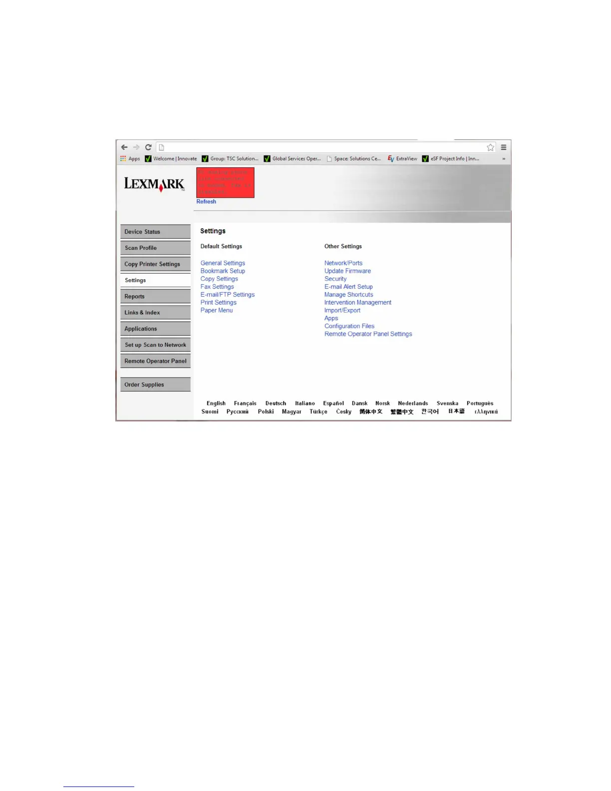 1 Open a Web browser, and then type the printer IP address.