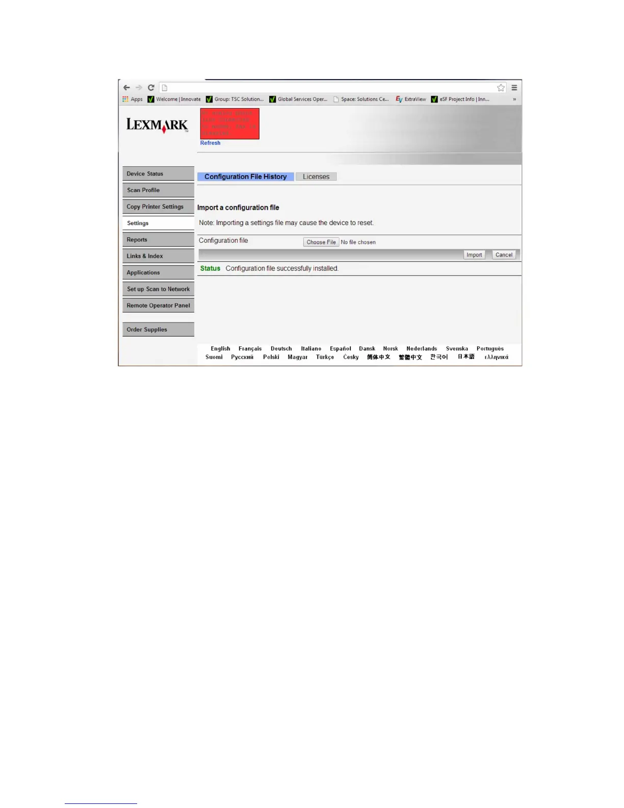 Warning—Potential Damage: Before updating the printer firmware, ask the next level of support for the correct