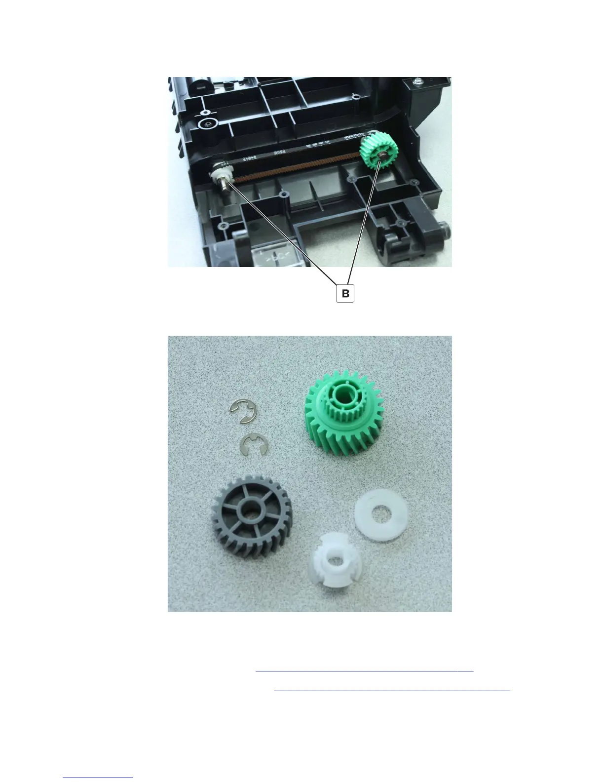 5 Release the two clips (C), and then remove the gears.
