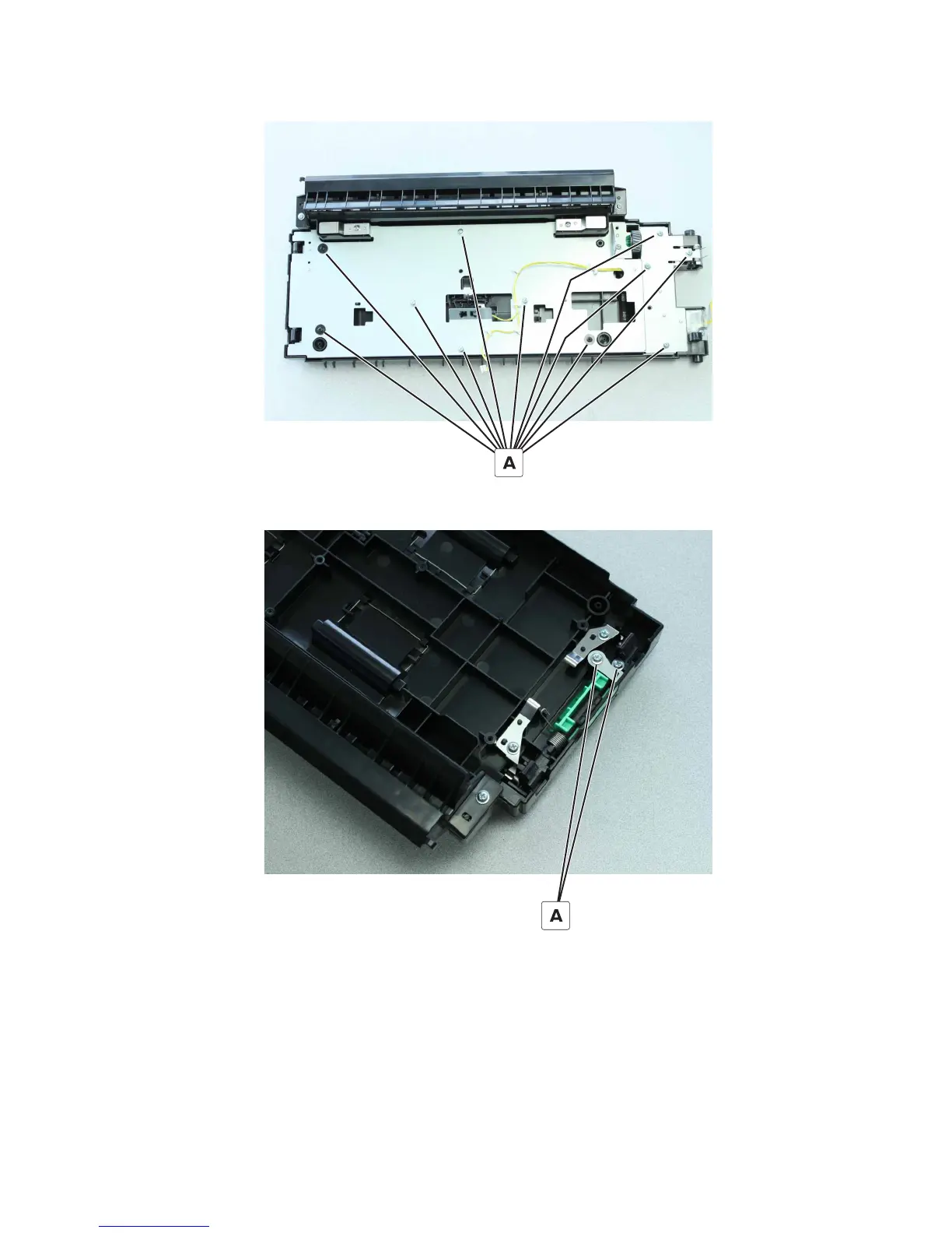 3 Remove the 11 screws (A), and then remove the plate.