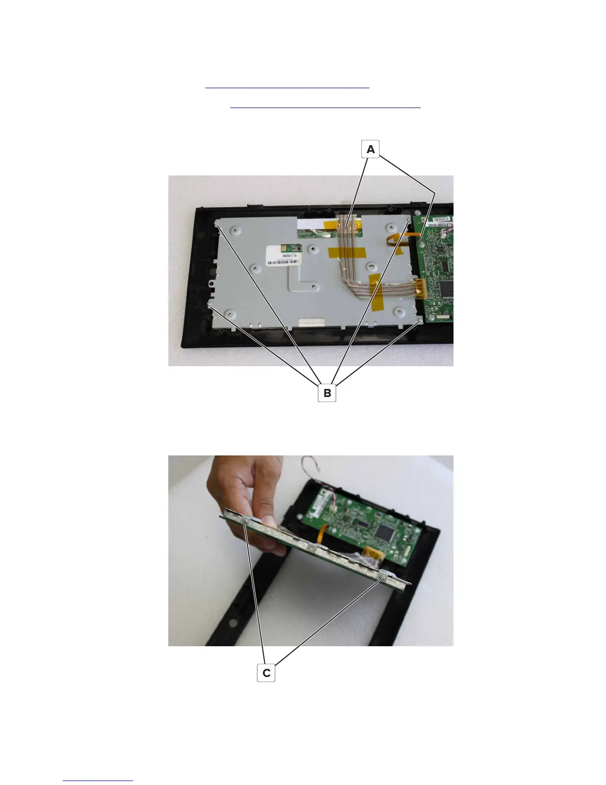 4 Remove the two screws (C), and then remove the two screws from the opposite side.