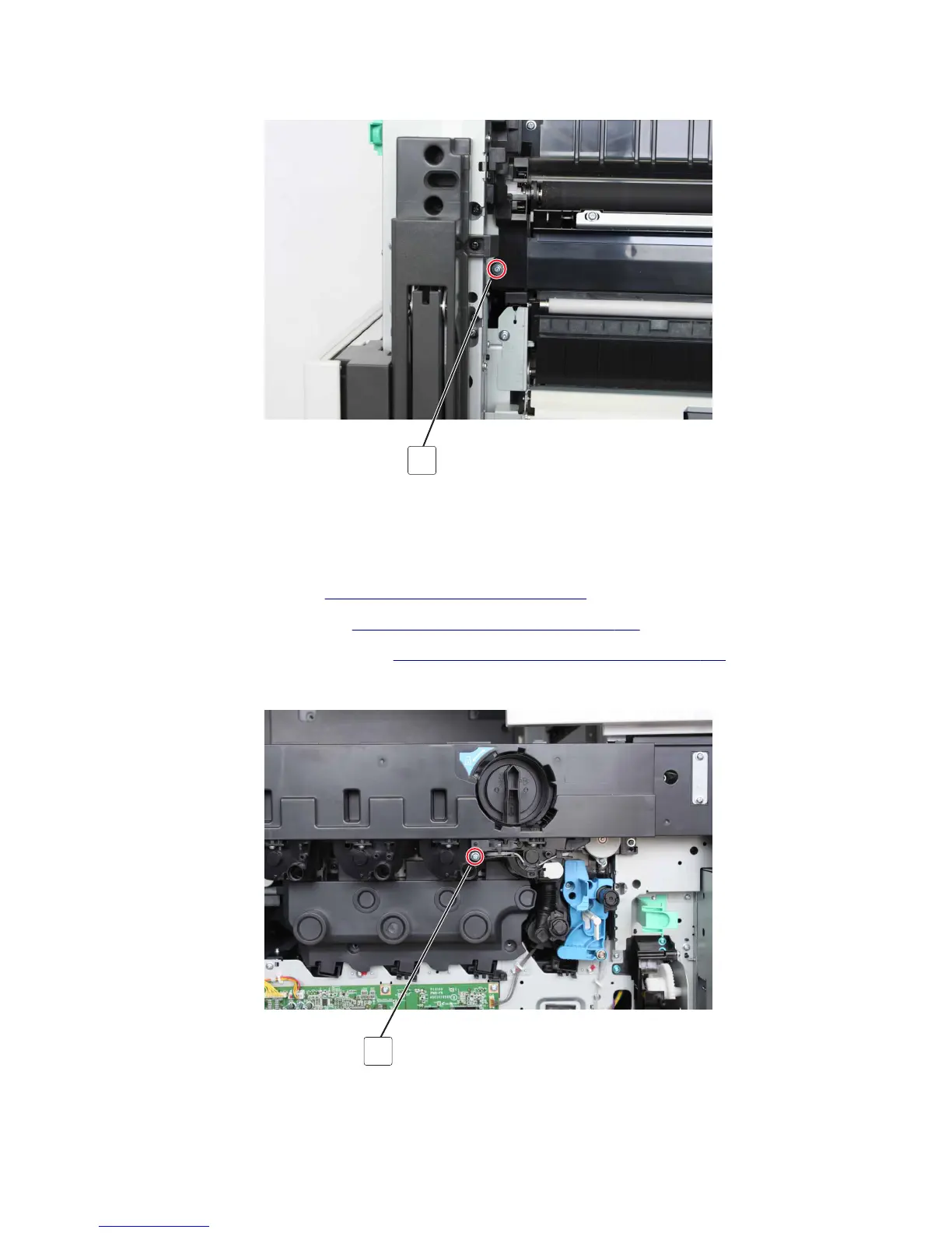 3 Remove the waste toner door mount. See “Waste toner door mount removal” on page 328.