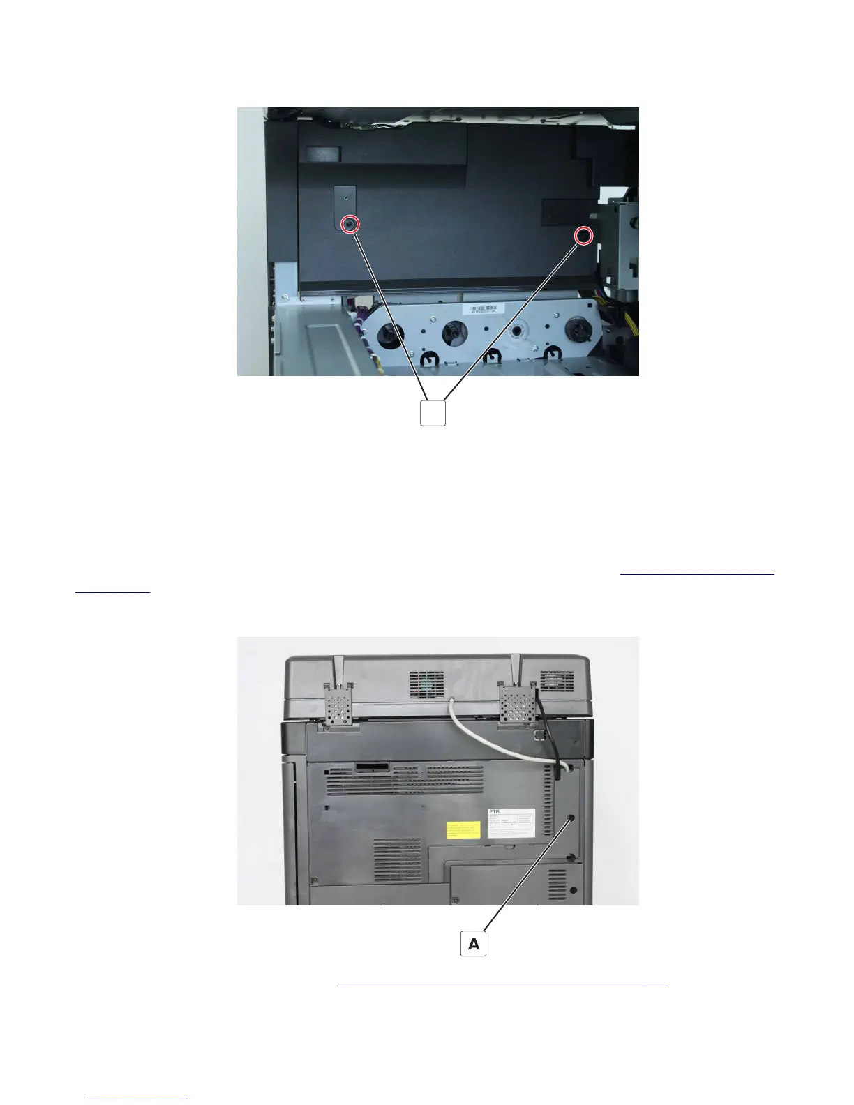 1 Remove the screw (A) securing the ADF rear cable access cover, and then remove the cover.
