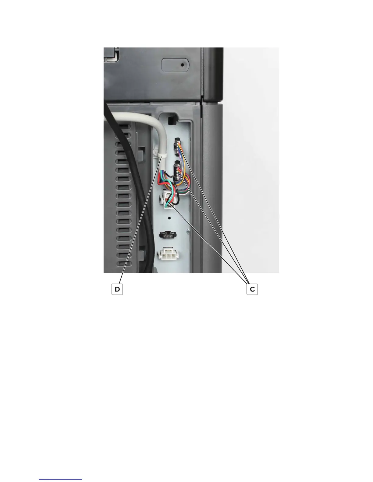 4 Disconnect the three cables (C), and then release them from the holder (D).