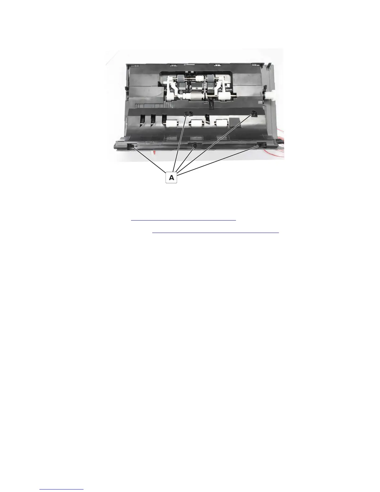 4 Remove the five screws (A), and then remove the ADF top cover.