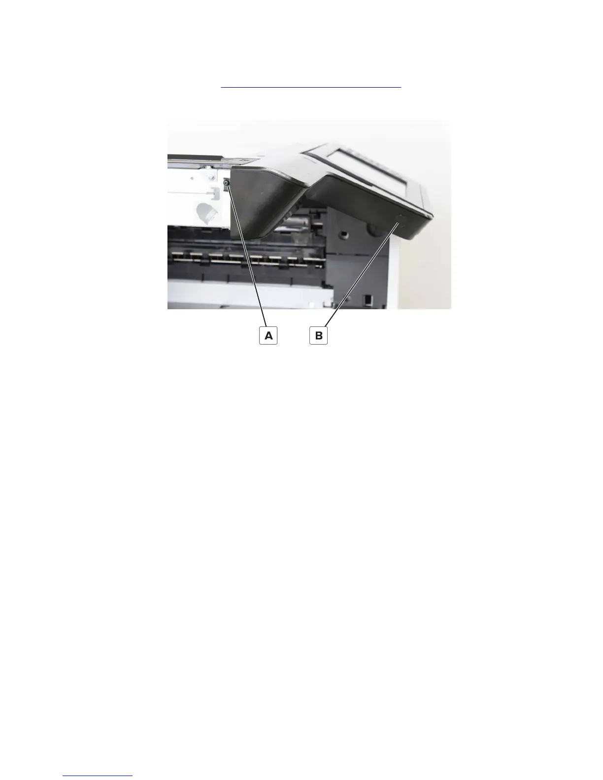 2 Remove the screw (A), peel off the screw cover (B), and then remove the second screw.