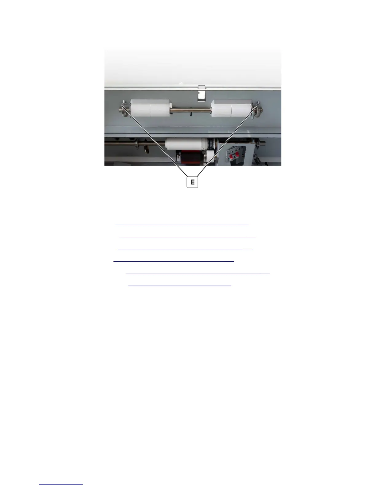 11 From under the assembly, remove the two springs (E), and then remove the roller.