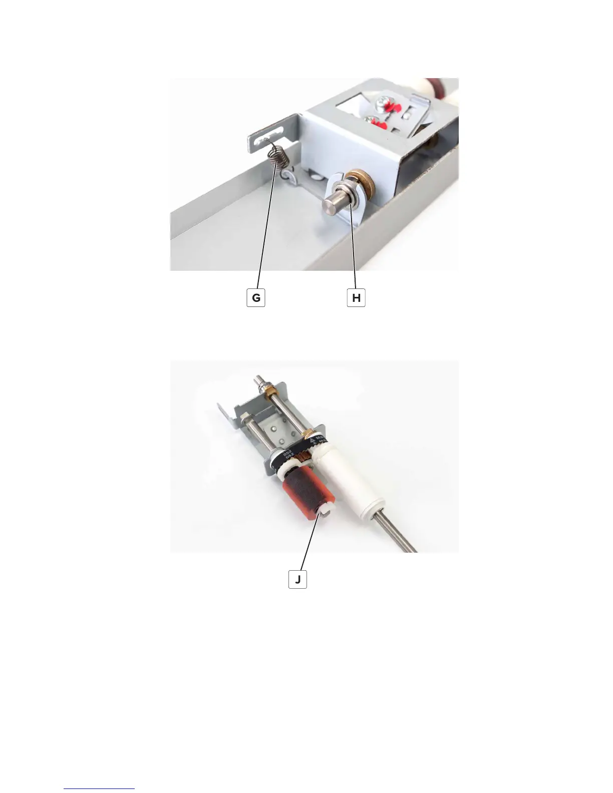 16 Remove the clip (J), and then remove the roller and the gear.