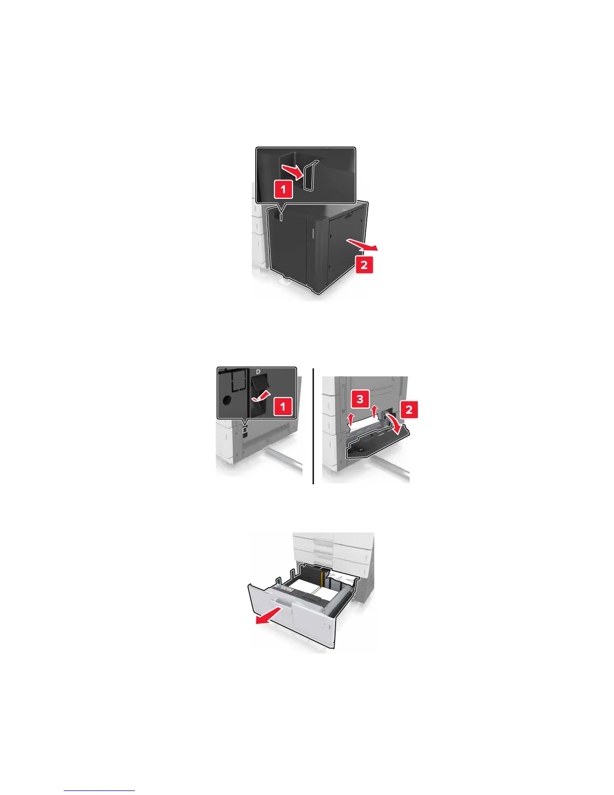 3 Open the optional tray, and then locate the jammed paper.
