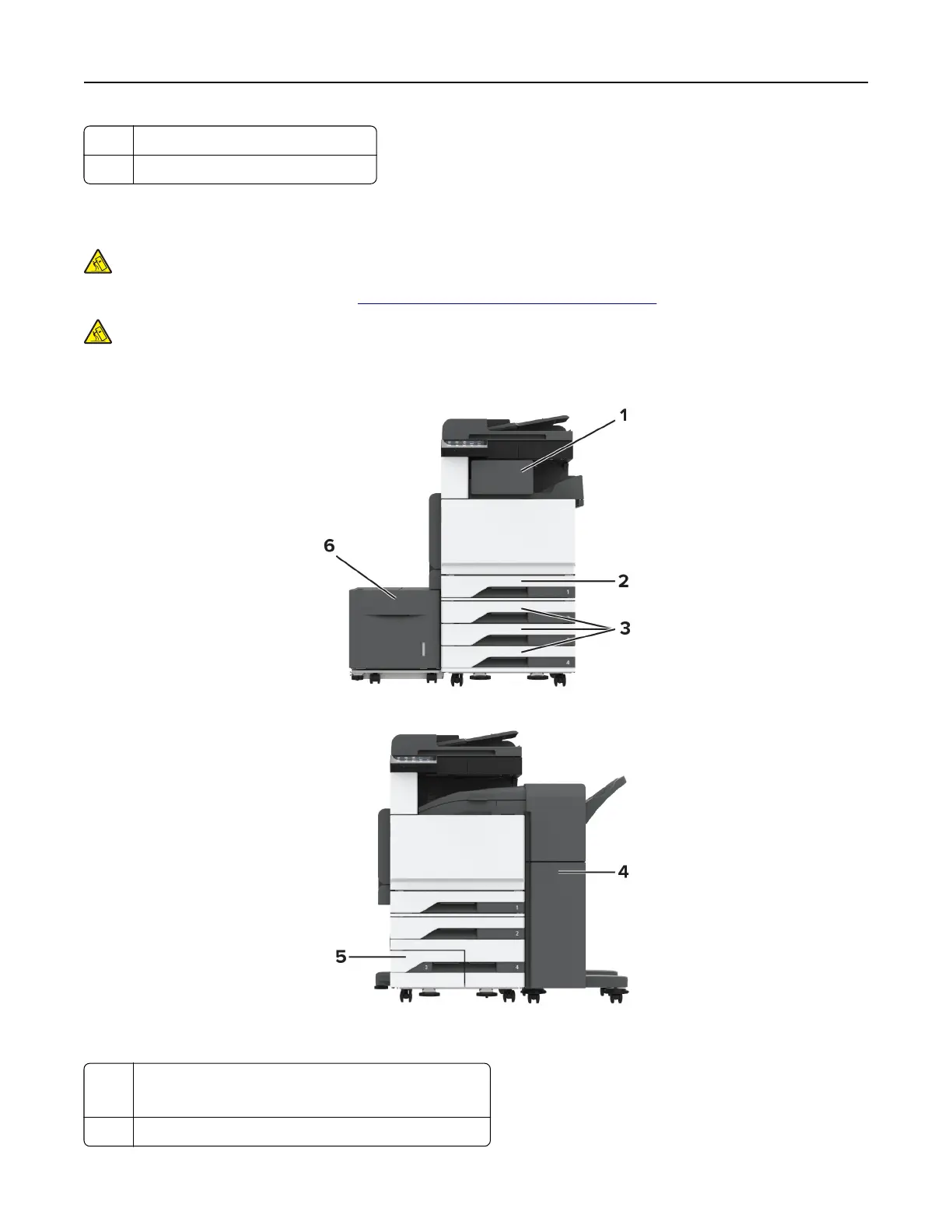 CAUTION—TIPPING HAZARD: Installing one or more options on your printer or MFP may require a