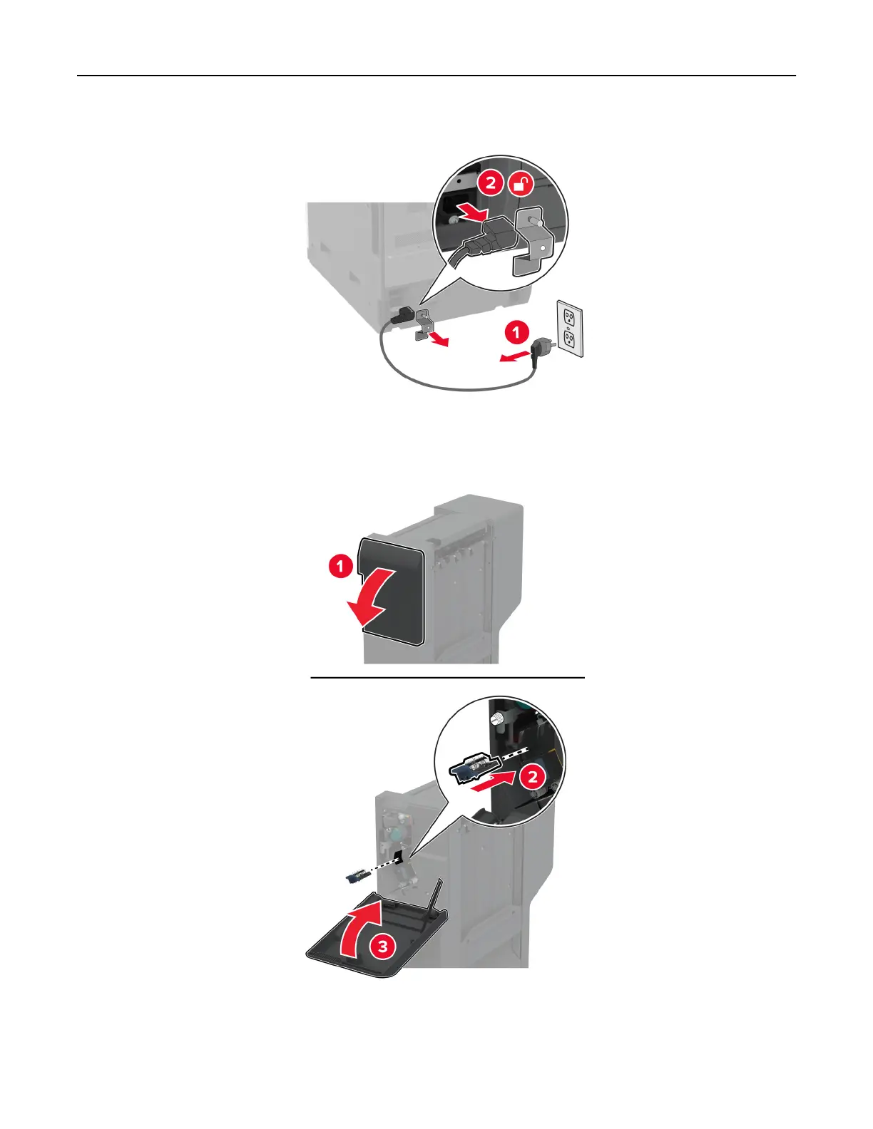2 Unplug the power cord from the electrical outlet, and then from the printer.