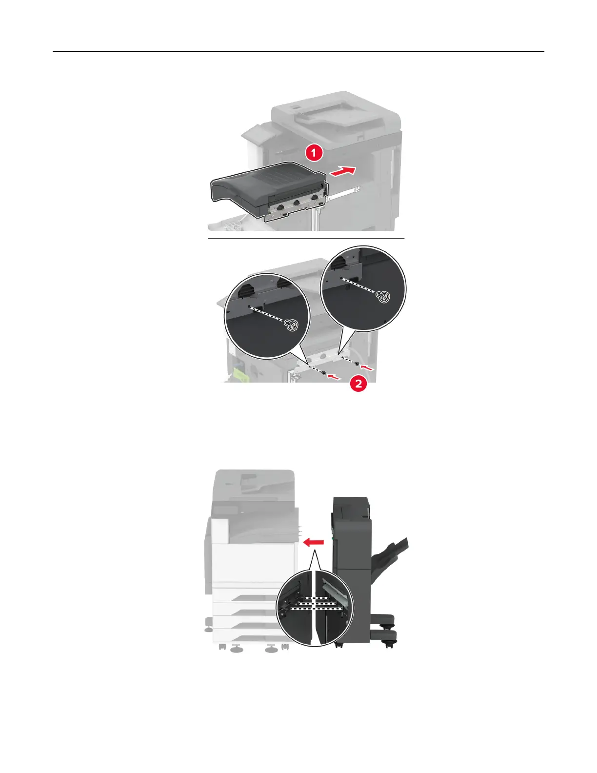 13 Attach the finisher to the printer.