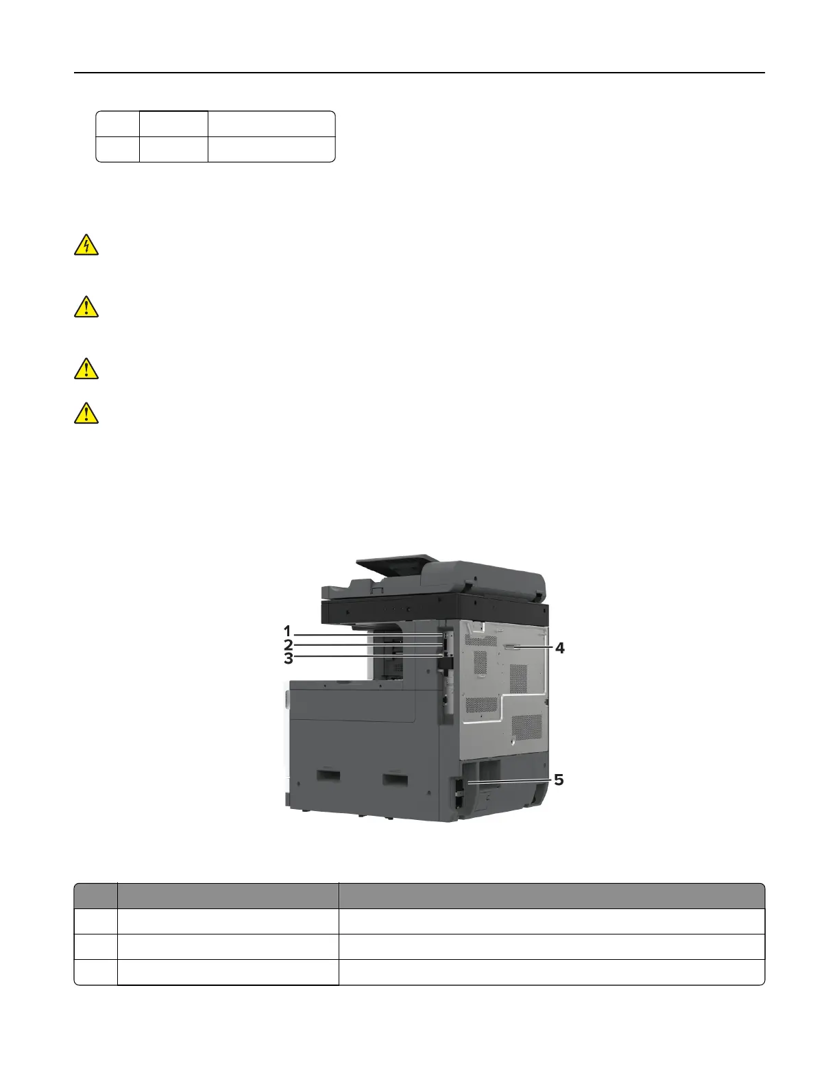 3 Ethernet port Connect the printer to a network.