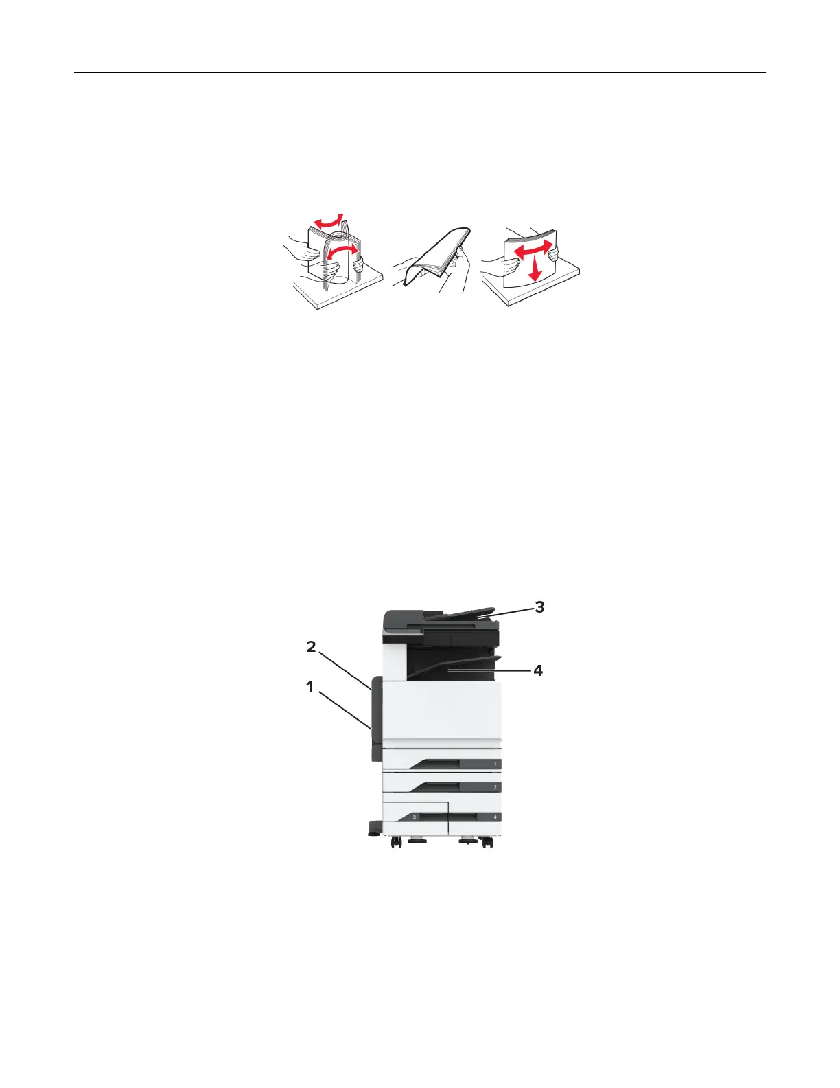 • Do not load paper that is wrinkled, creased, damp, bent, or curled.