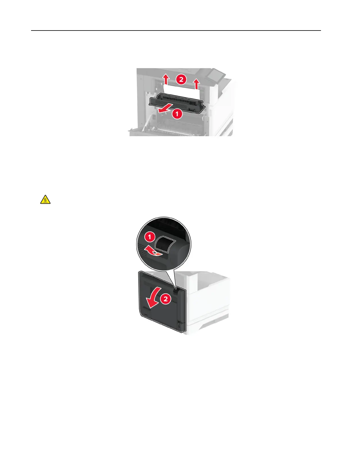 CAUTION—HOT SURFACE: The inside of the printer might be hot. To reduce the risk of injury from a
