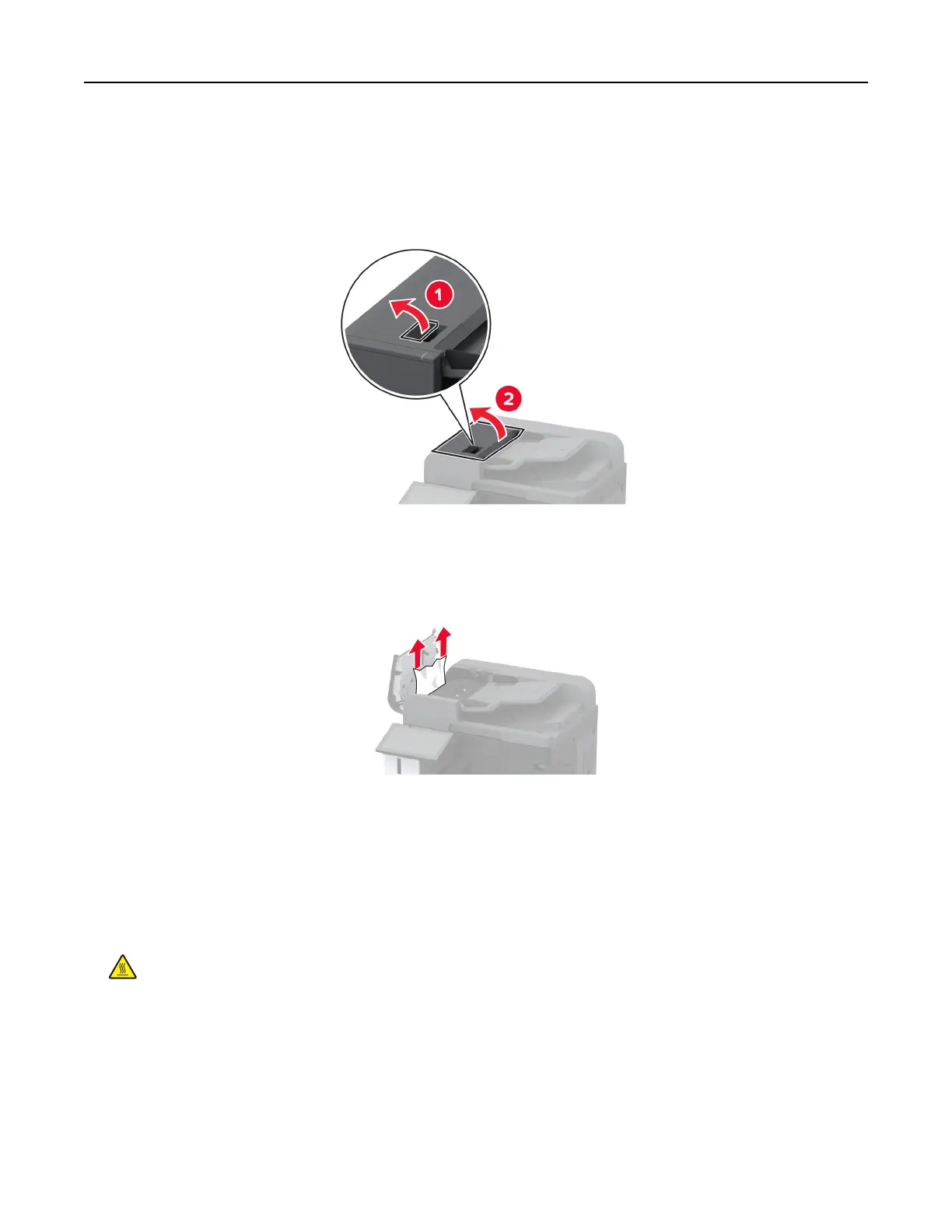 CAUTION—HOT SURFACE: The inside of the printer might be hot. To reduce the risk of injury from a