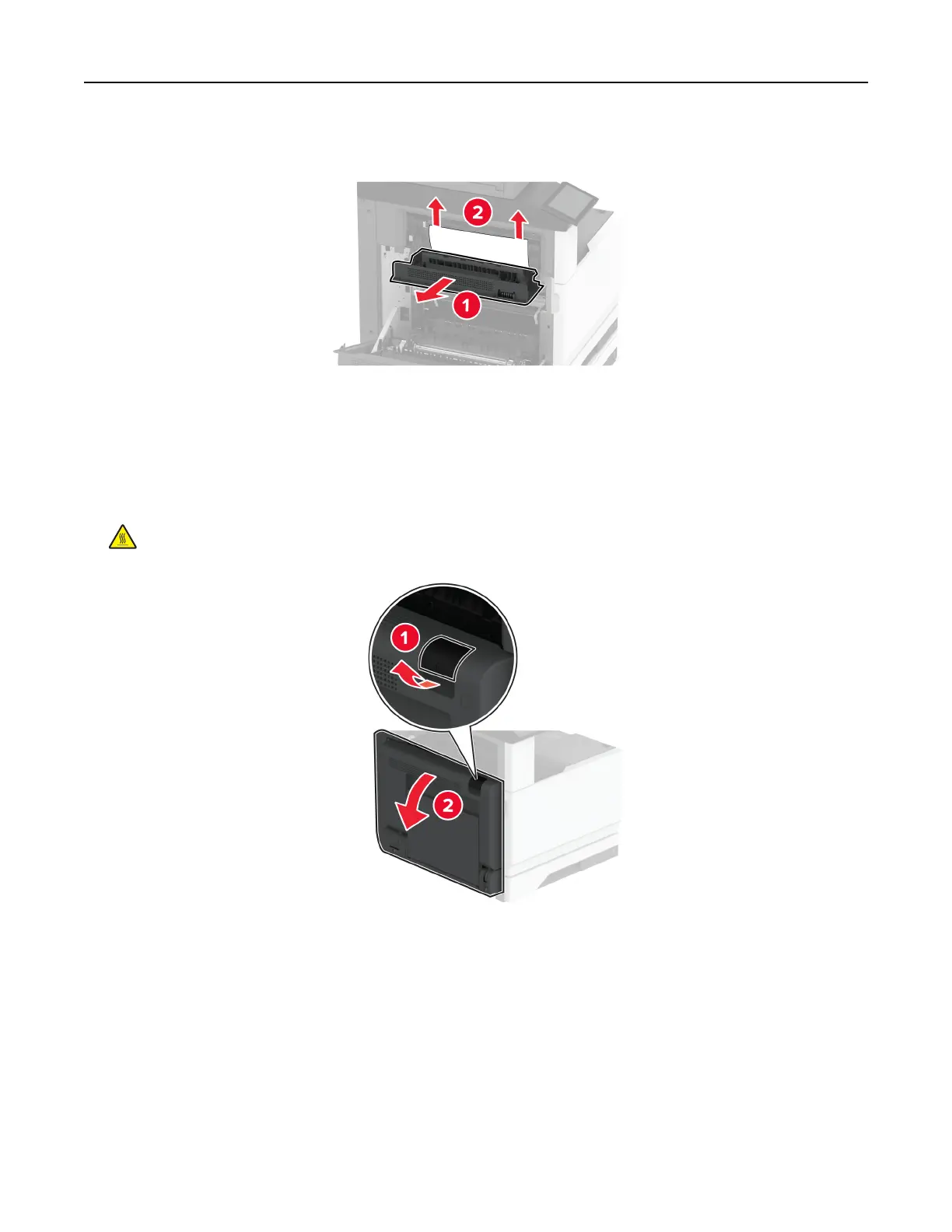 CAUTION—HOT SURFACE: The inside of the printer might be hot. To reduce the risk of injury from a