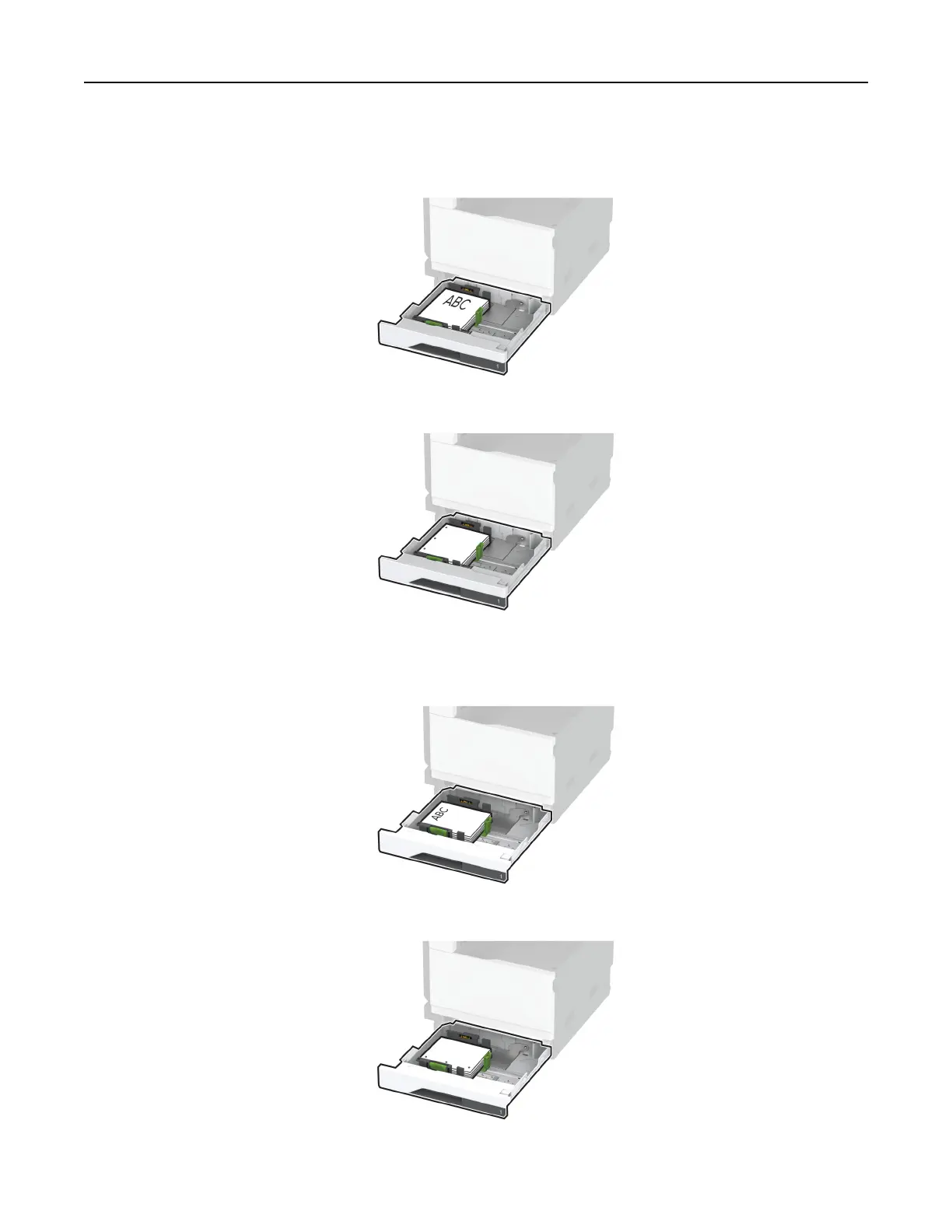 Load letterhead faceup with the header toward the back of the tray.