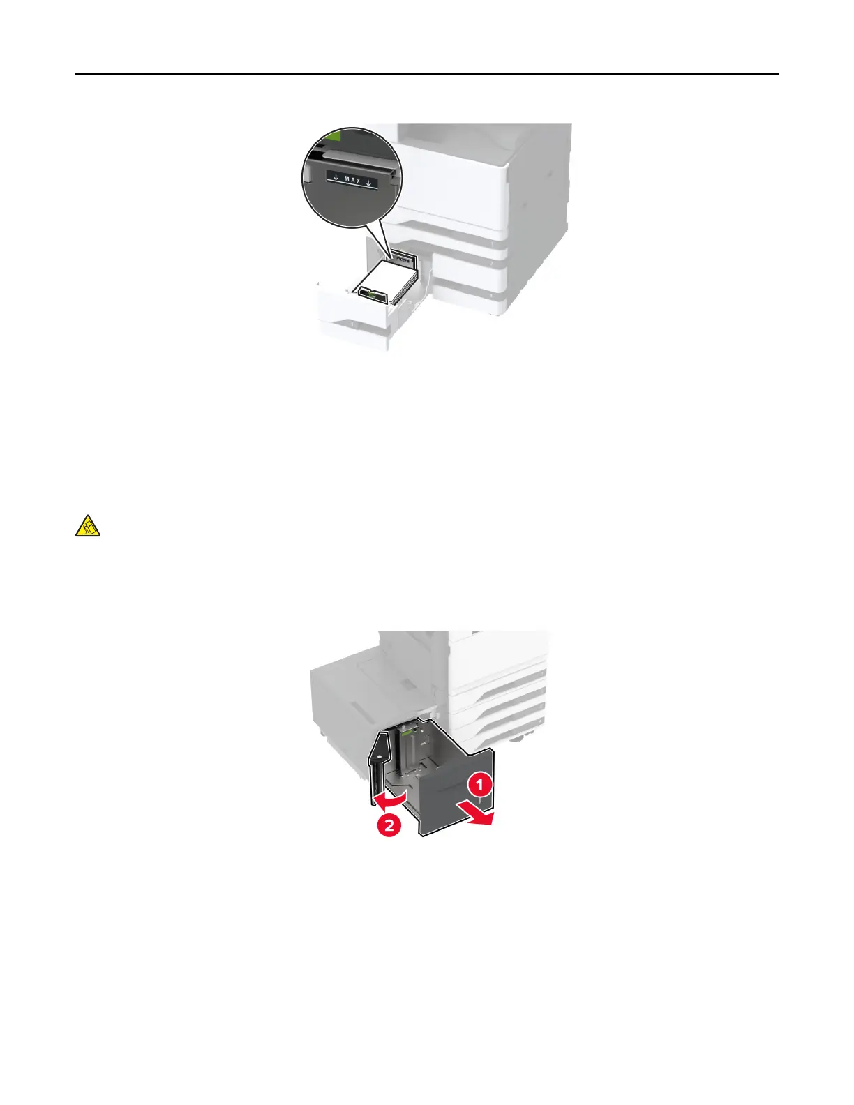CAUTION—TIPPING HAZARD: To reduce the risk of equipment instability, load each tray separately.