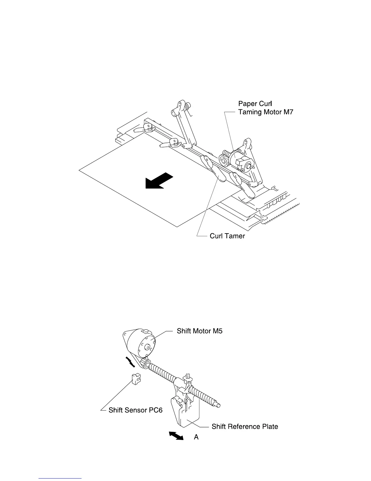 transported onto the finisher tray. The paper curl taming motor turns