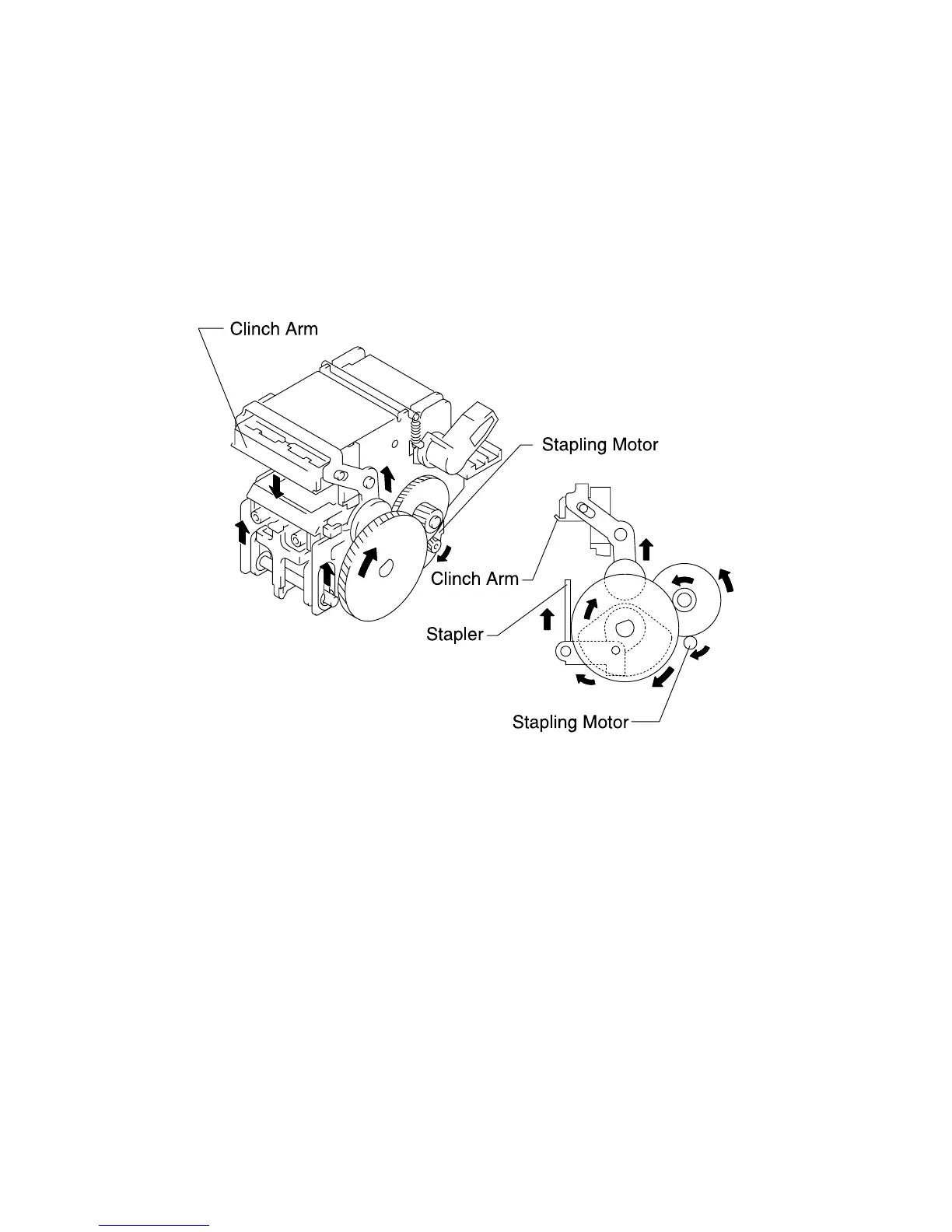 When the stapling motor turns forward, the clinch arm lowers. The
