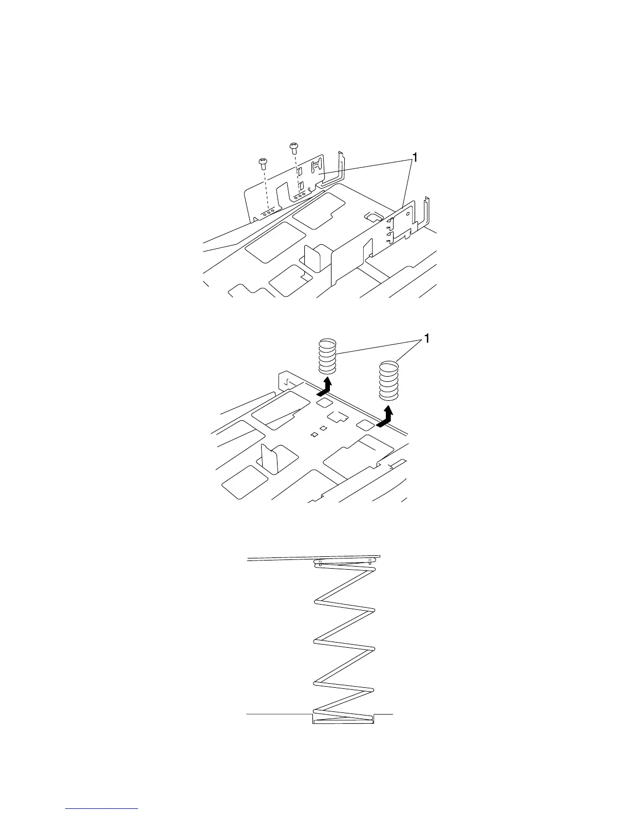 2. Remove the two edge guide assemblies (1). (2 screws each)