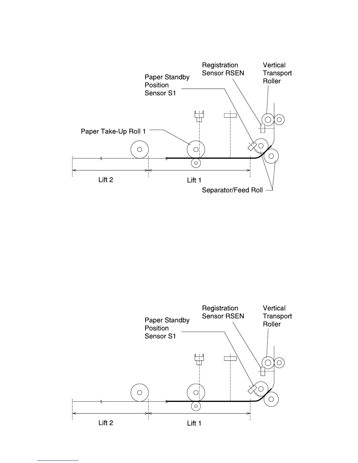 transport roller unblocks paper standby position sensor S1, the