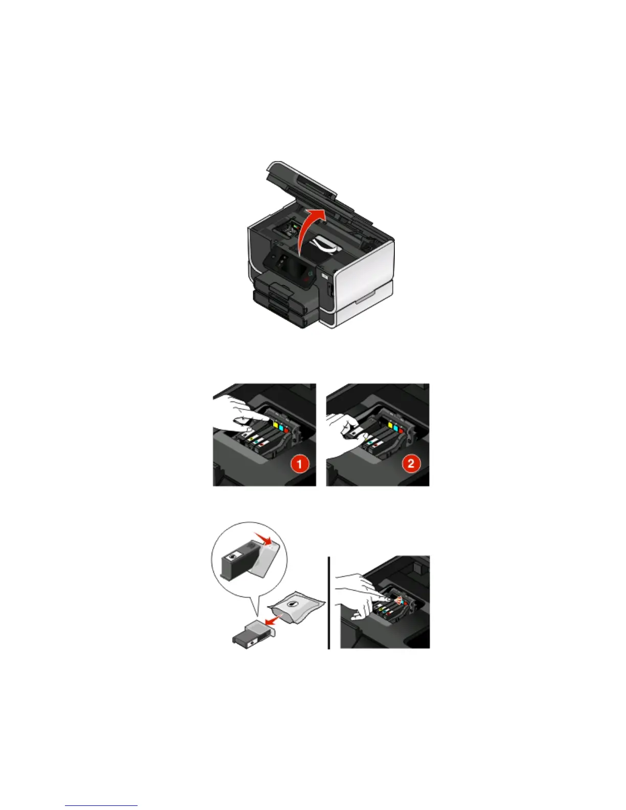 Make sure you have a new ink cartridge or cartridges before you begin. You must install new cartridges immediately