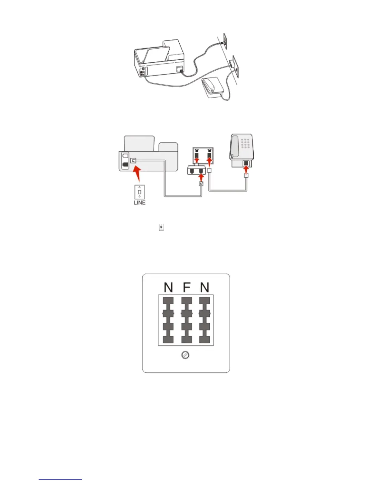 The German wall jack has two kinds of ports. The N ports are for fax machines, modems, and answering machines.
