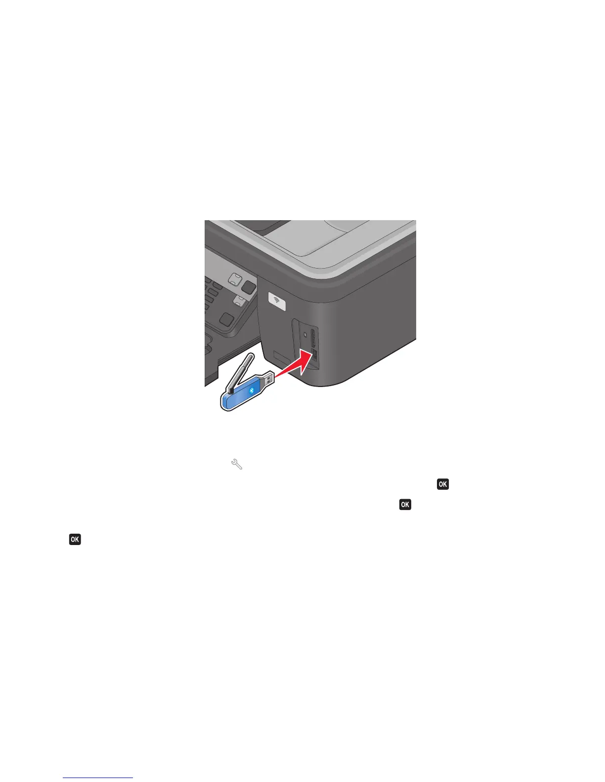 1 Insert a USB Bluetooth adapter into the USB port located on the front of the printer.