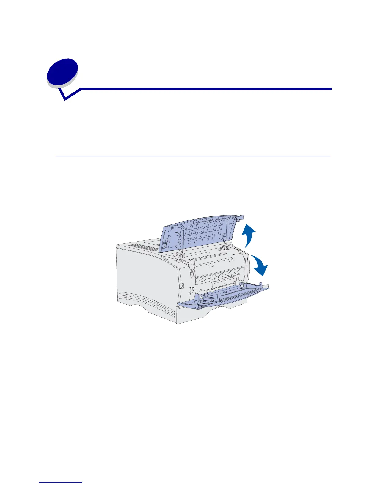 3 Open the upper front door and multipurpose feeder door.