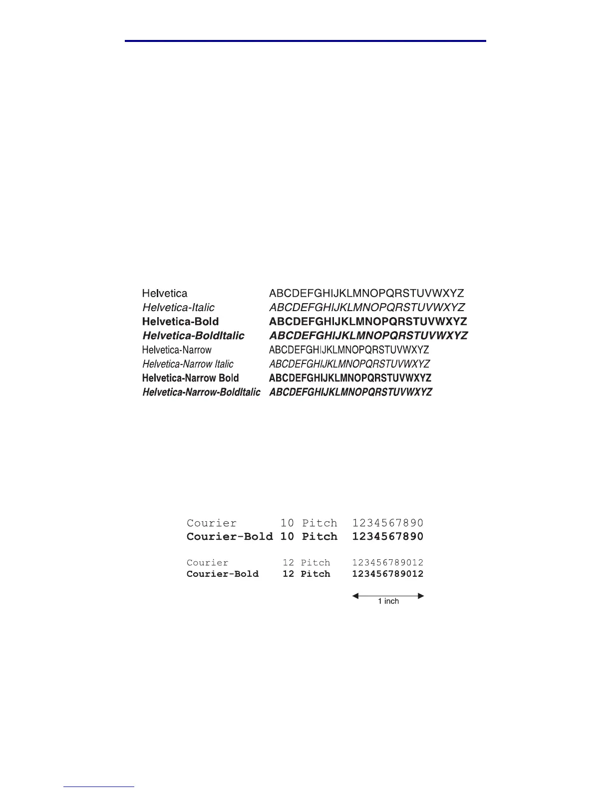 For example, all 10-pitch fonts print 10 characters per inch (cpi) and all 12-pitch fonts print 12 cpi: