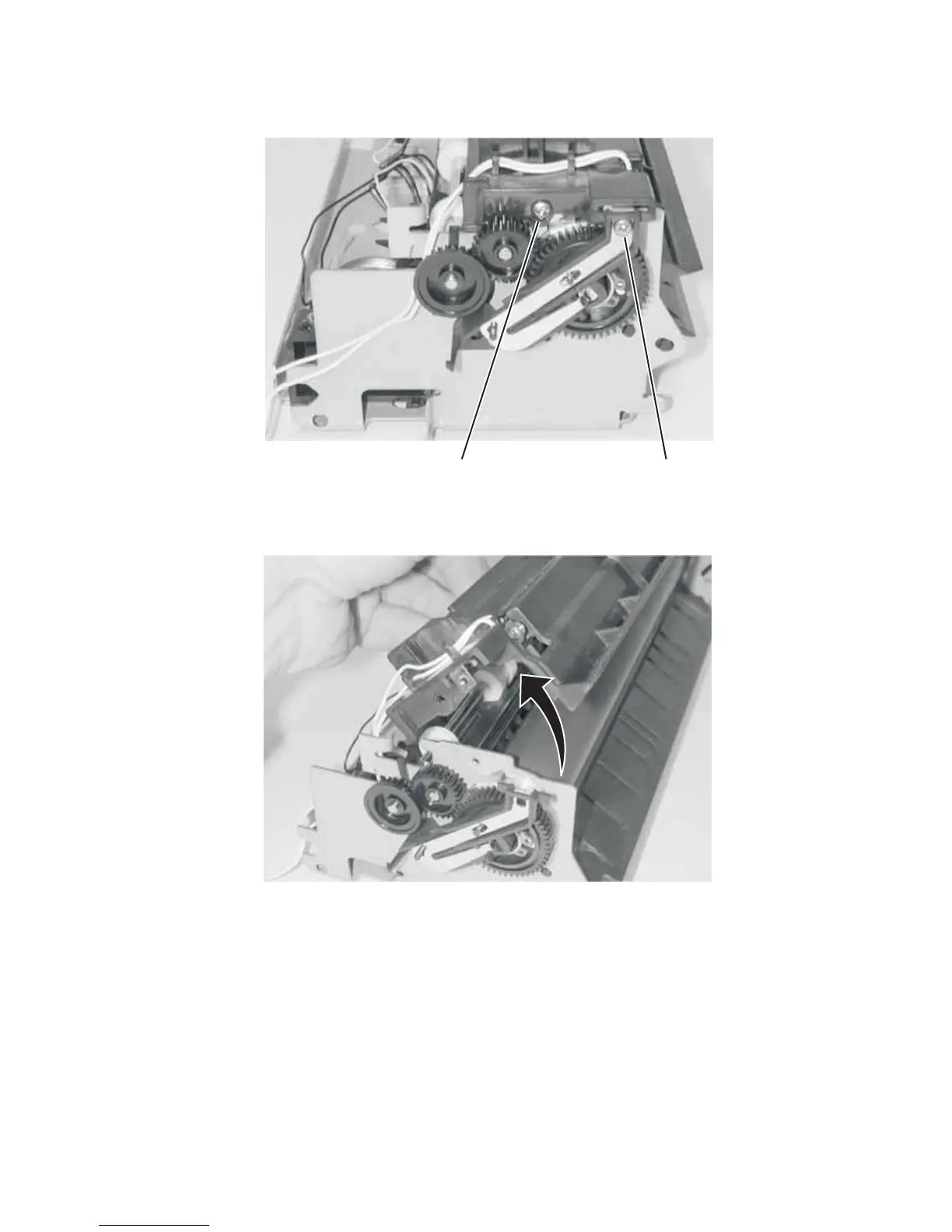 8. Remove the two screws (B), one on each side of the fuser, that attach the fuser upper cover
