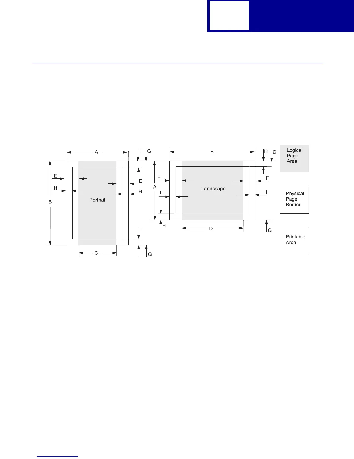 I Distance between the top and bottom edge of the physical page and the printable area in