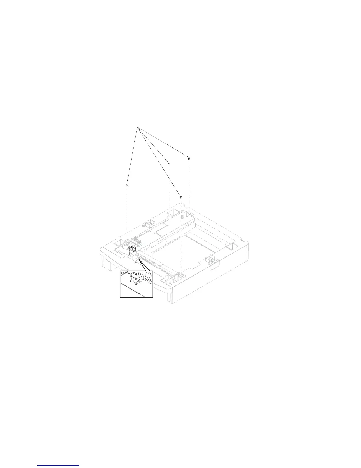 4. Remove the four screws (A) securing the 250-sheet frame assembly to the drawer.