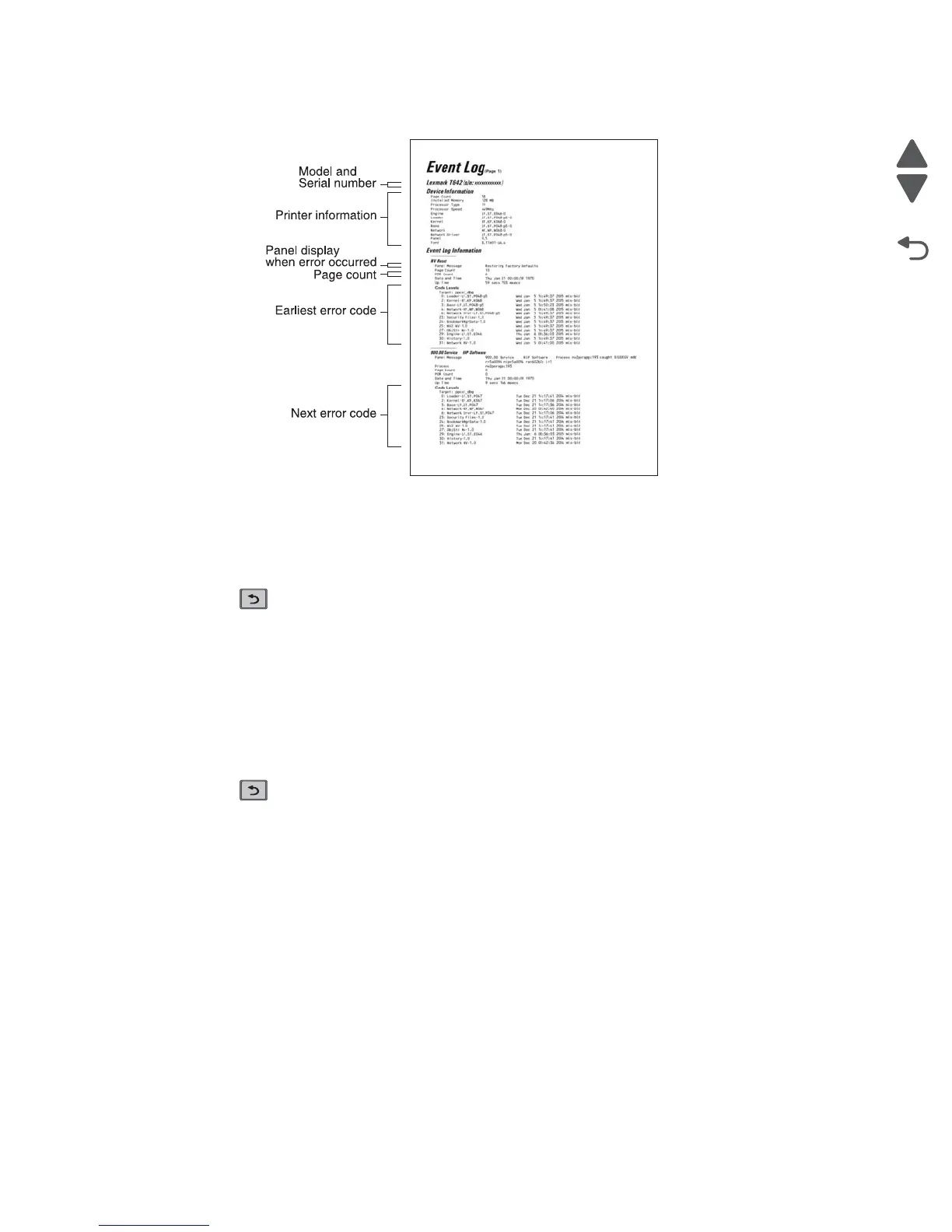 The printed event log can be faxed to Lexmark or your next level of support for verification or diagnosis.