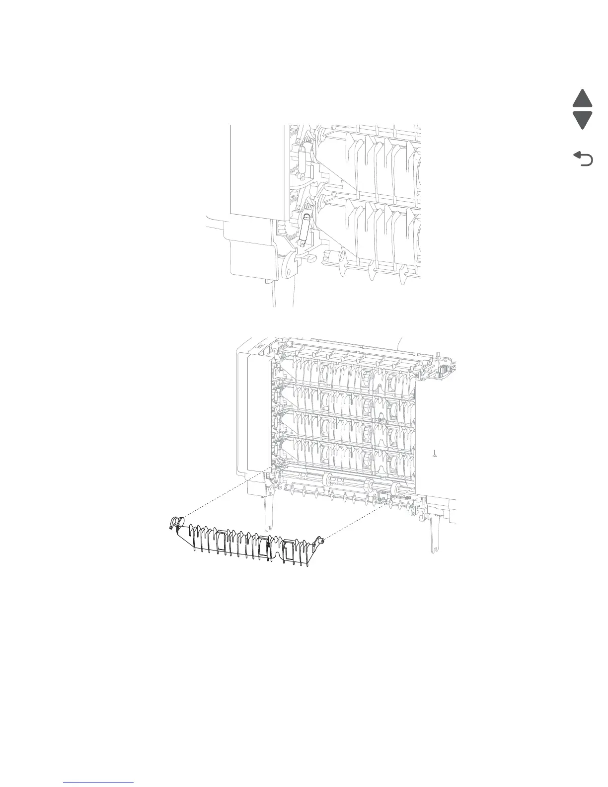 1. Remove the rear door assembly. Go to “5-bin mailbox rear door assembly removal” on page 4-84.