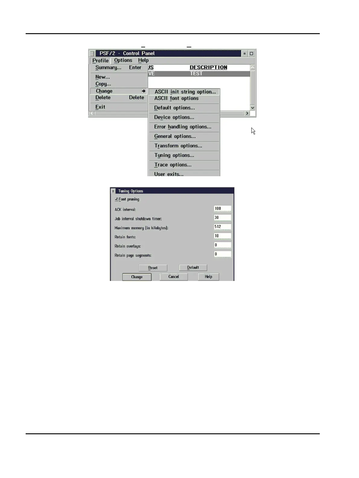 b) On the PSF/2 Control Panel select Profile and then Change.