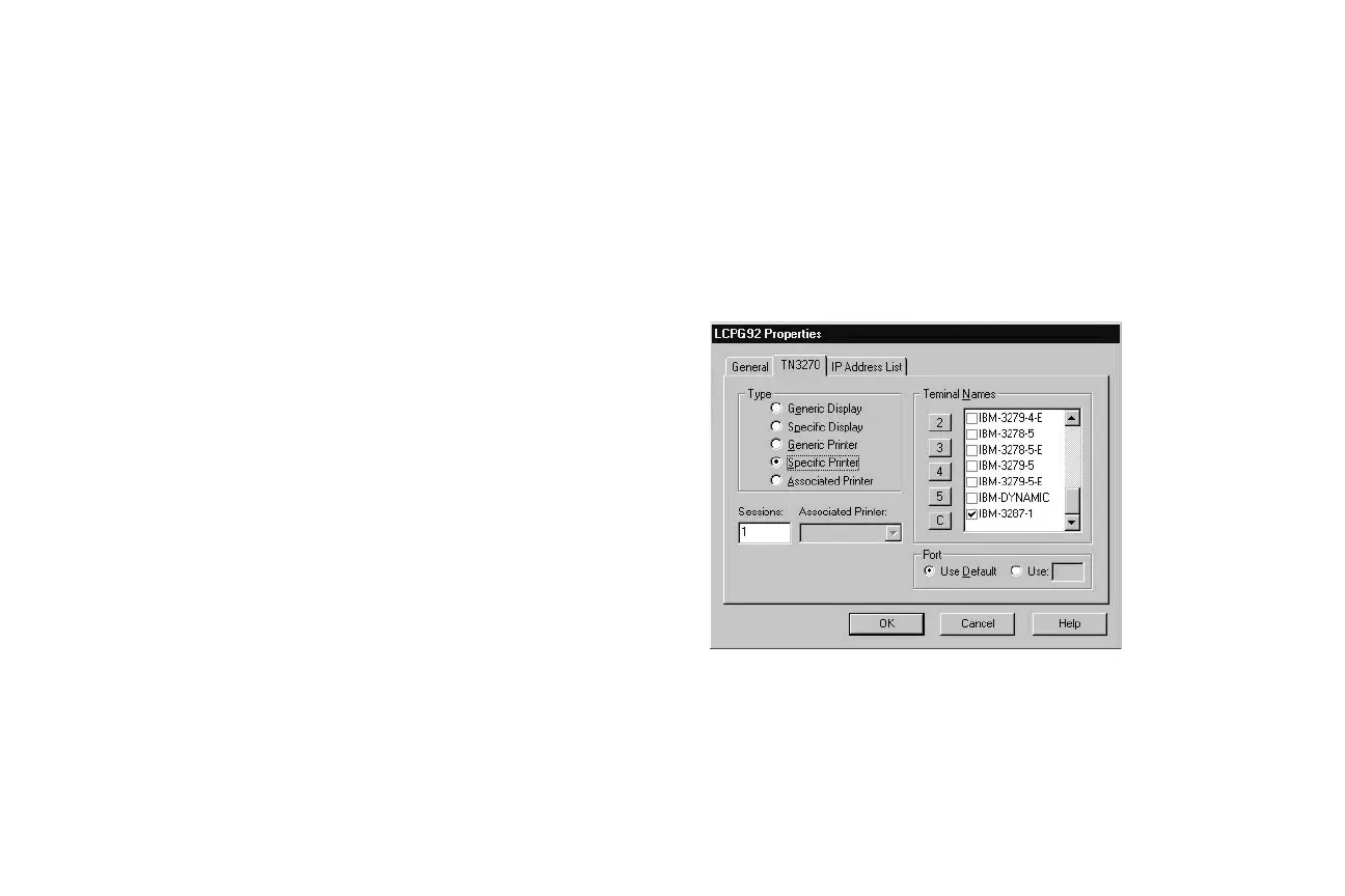 4 Left-click the TN3270 tab. Mark Specific Printer and the IBM-