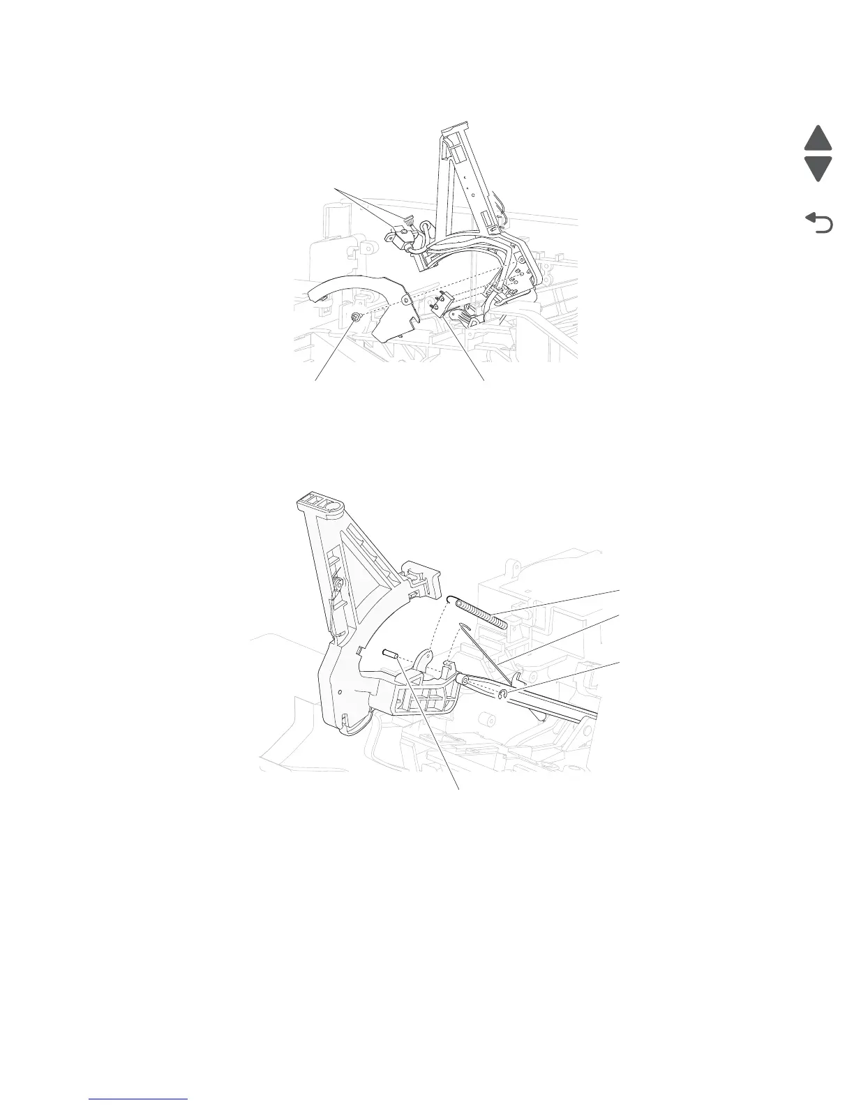 6. Detach the spring (D) from the operator panel hinge assembly, left.