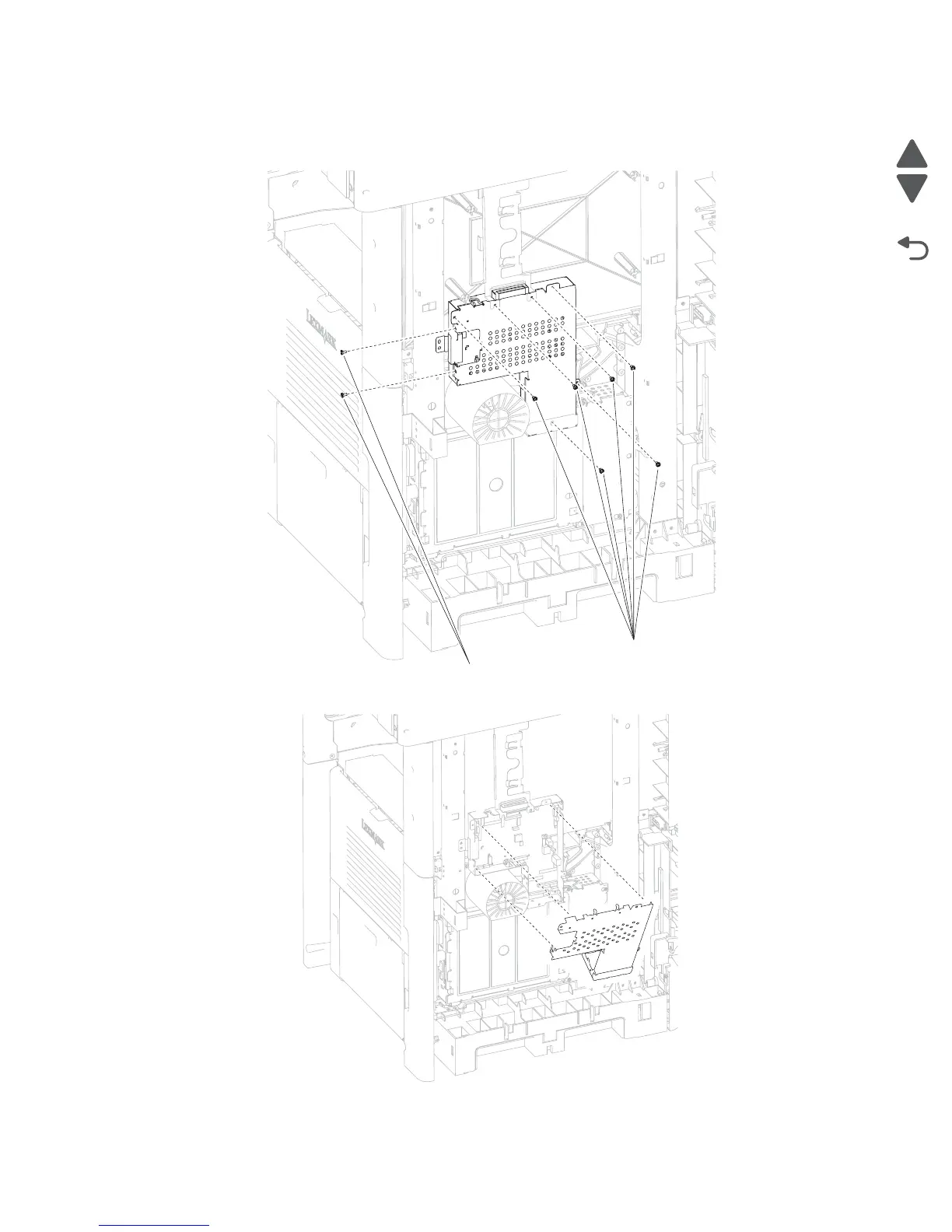 6. Remove eight screws (E) securing the scanner controller cage cover to the cage. An X658 model is