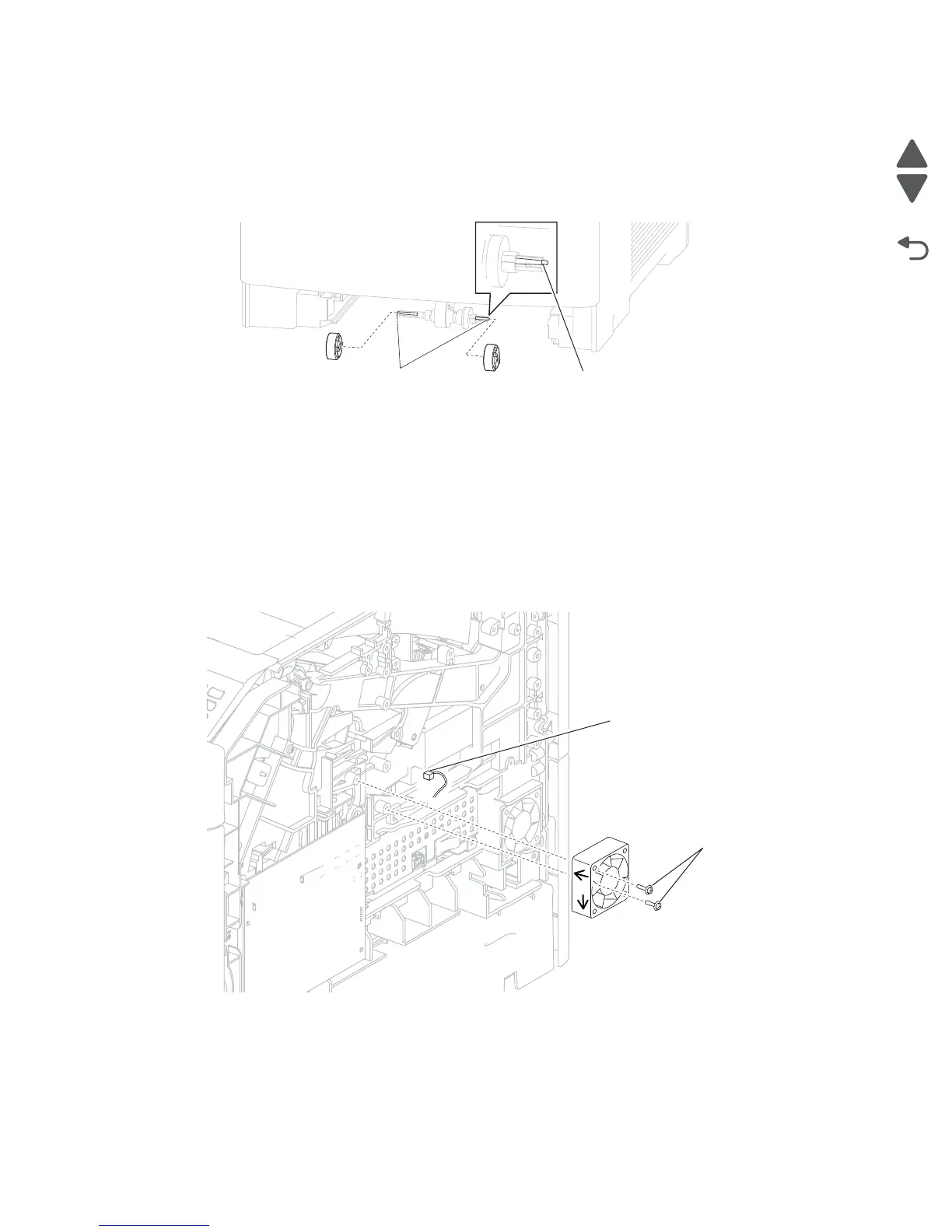 Replacement Warning: When replacing the print cartridge cooling fan, ensure that it is installed as shown in