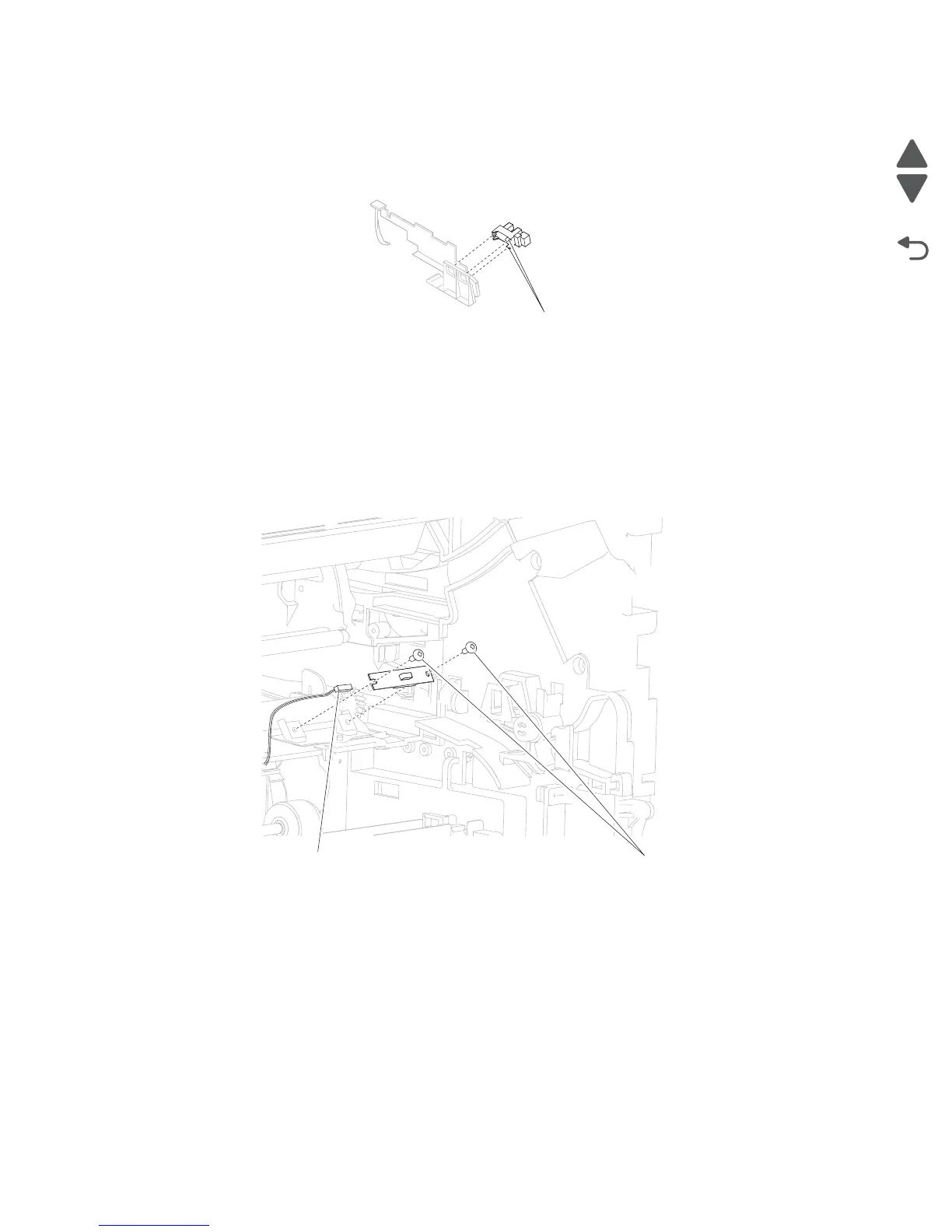 1. Remove standard bin actuator assembly. Go to “Sensor (standard bin exit) removal” on page 4-72.