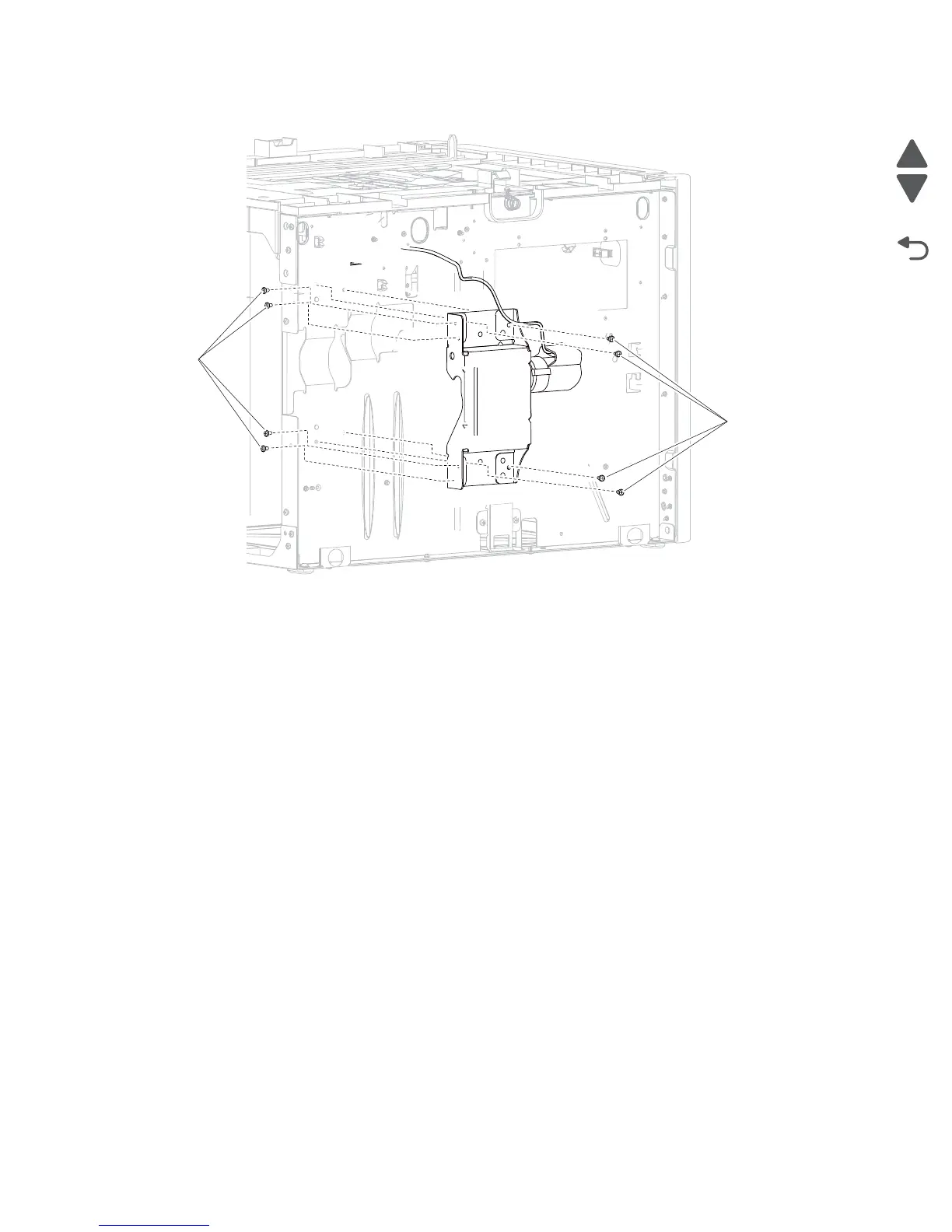 4. Remove the eight screws (A) securing the HCIT tray lift drive motor assembly.