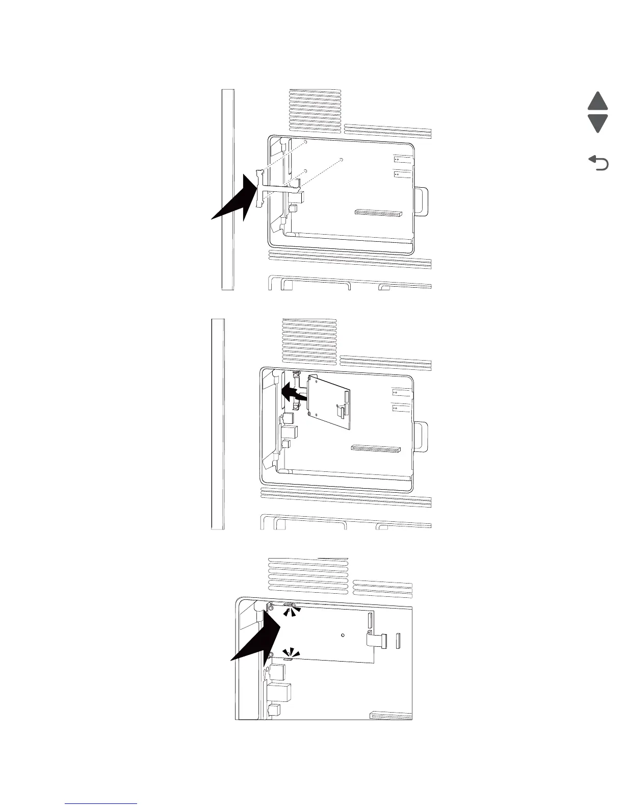8. Snap the plastic tee card holder into place on the system board.