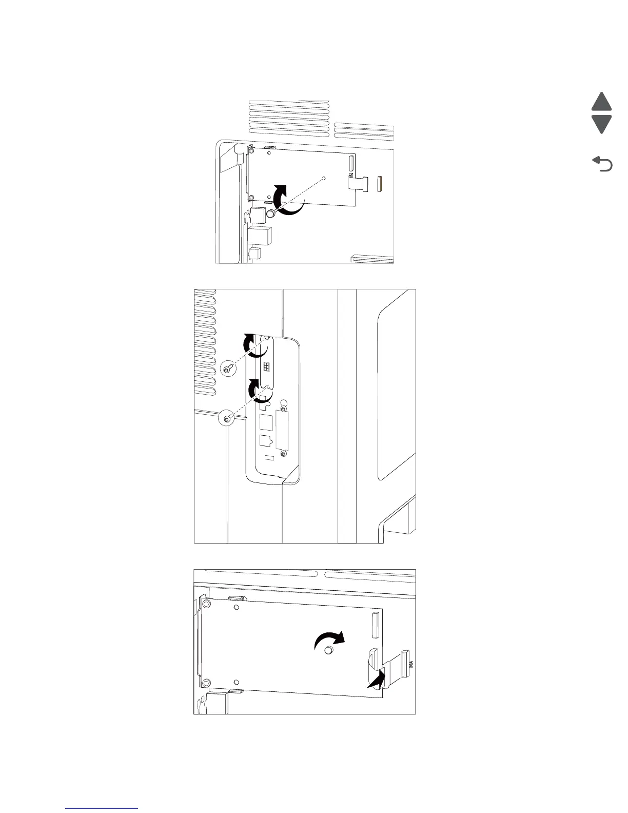 11. Insert the long thumbscrew into the hole in the interface card. Turn it just enough to hold the card in place.
