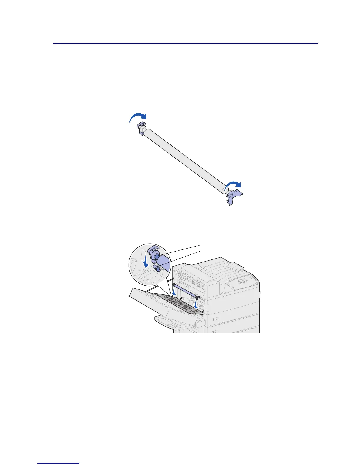 3 Align the steel bars on the transfer roller with the grooves in the printer.
